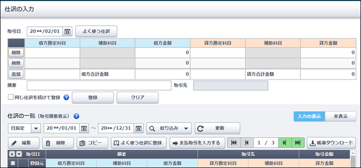 逆に複式簿記を知っている簿記2〜3級程度あれば、シンプルで簿記の感覚がつかみやすい画面構成なので使いやすいと思います。