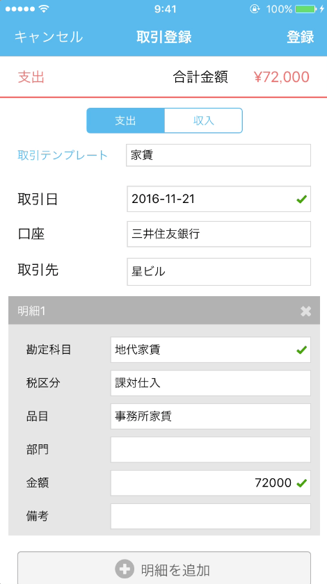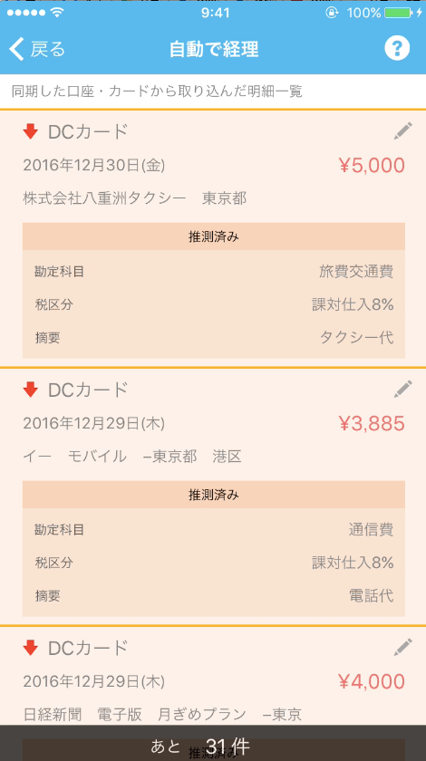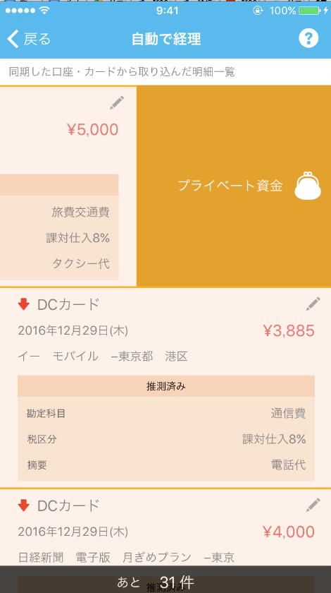 仕訳がスマホでできる。