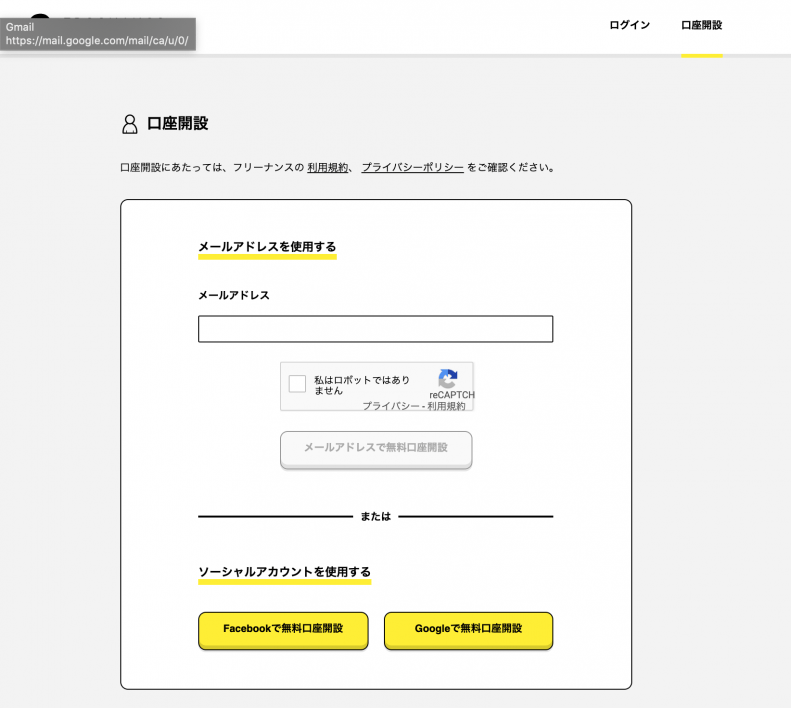 では実際に登録をしてみましたので、登録画面を紹介させていただきます。