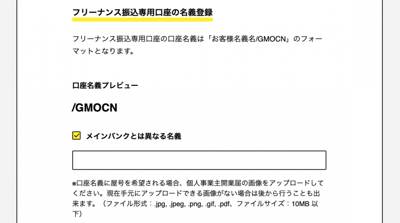 フリーナンス振込専用口座を屋号で作りたい場合は設定が可能です。