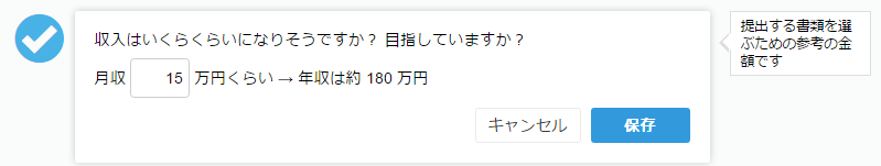 事業開始日を入力したら次はおおよそ一年間の収入について聞かれます。