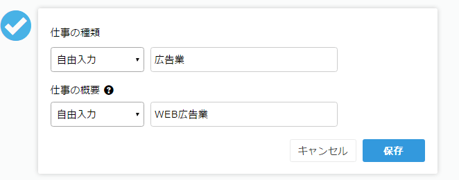私の場合は、WEBを利用した広告業を営んでいるので、仕事の種類を「広告業」として、概要をWEB広告業としています。