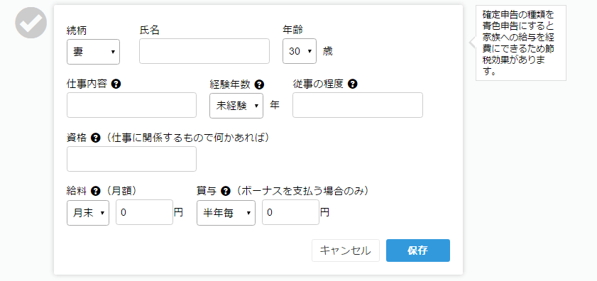 今回は妻に事業を手伝ってもらって給料を支払うかたちで設定をしました。