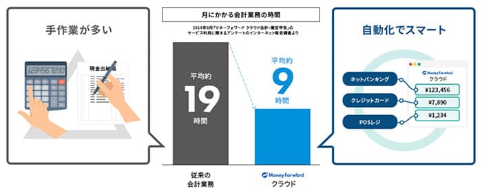 経費・請求書・給与・勤怠管理などバックオフィス業務を自動化することで会計にかかる作業時間が大幅に削減します。