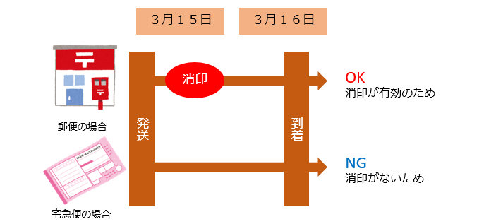 でも宅急便だと消印がないので、到着した日が提出日となります。郵便と同じように同じ15日に送って16日着でも、期限外になってしまうので駄目です。